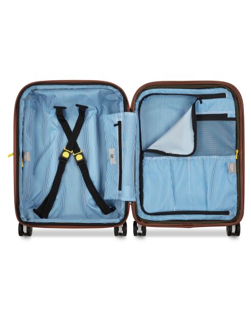 Созданные для сопровождения всех путешественников, стремящихся к стилю, изделия DELSEY PARIS сочетают в себе смелый дизайн и инновационные функции. Этот багаж оснащён сверхпрочной жёсткой оболочкой, разработанной для защиты от ударов и царапин благодаря антицарапающему покрытию. Его уникальный дизайн подчеркнут вставками из веганской кожи цвета коньяк, создающими выразительный стиль. Переработанная подкладка, съёмная и стираемая при 30°C. Организация внутреннего пространства: регулируемые ремни, сетчатый карман и карман для обуви. Максимальная безопасность благодаря застёжке SECURITECH® 2, непроницаемой двойной молнии и прочным бегункам. Утверждённый замок TSA (008), позволяющий безопасное открытие чемодана сотрудниками службы безопасности без повреждений.